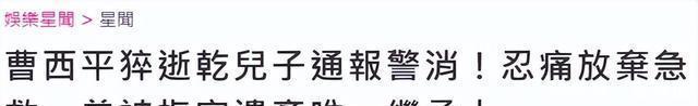 根据报道,当警方来到家中后,发现曹先生身体都已经僵硬了,而干儿子也放弃了抢救, 这时候就有些人开始“阴谋论”了,其实当时老爷子已经无力回天,所以说干儿子才决定放弃抢救,